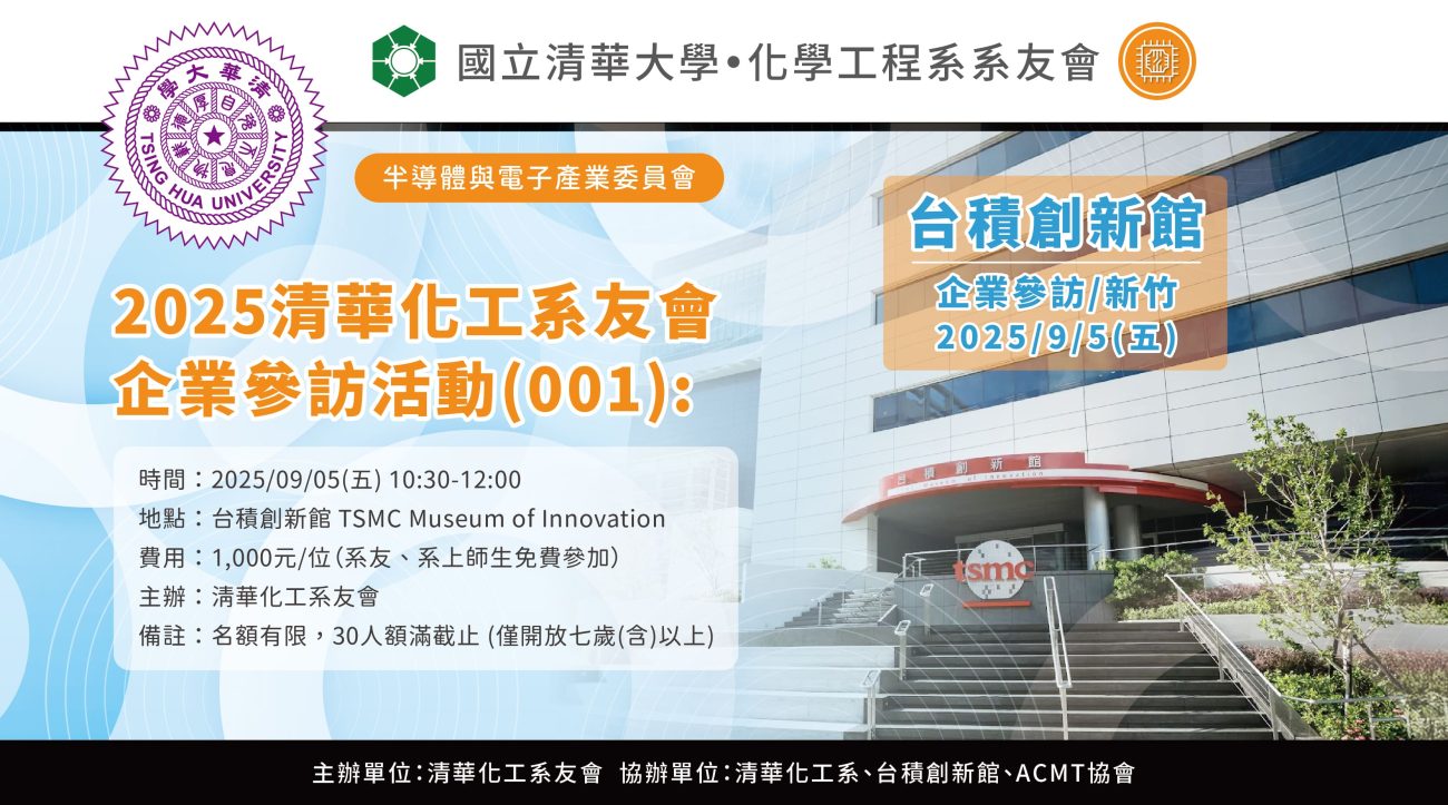 • 主辦單位:清華化工系友會