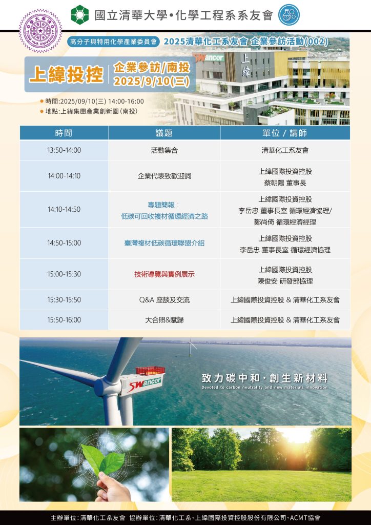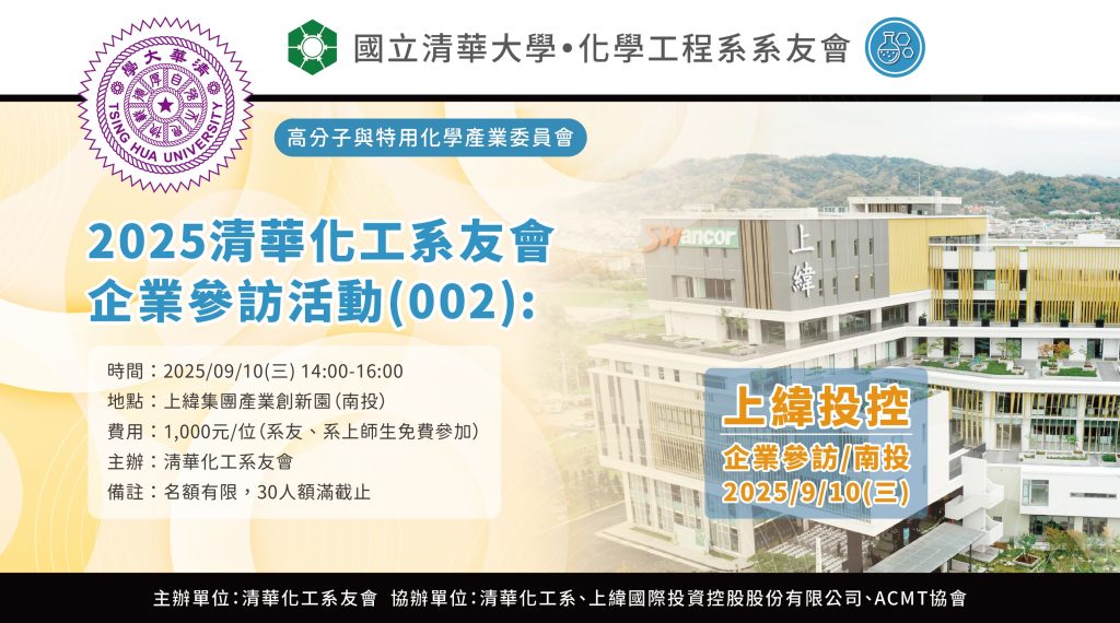 • 主辦單位:清華化工系友會